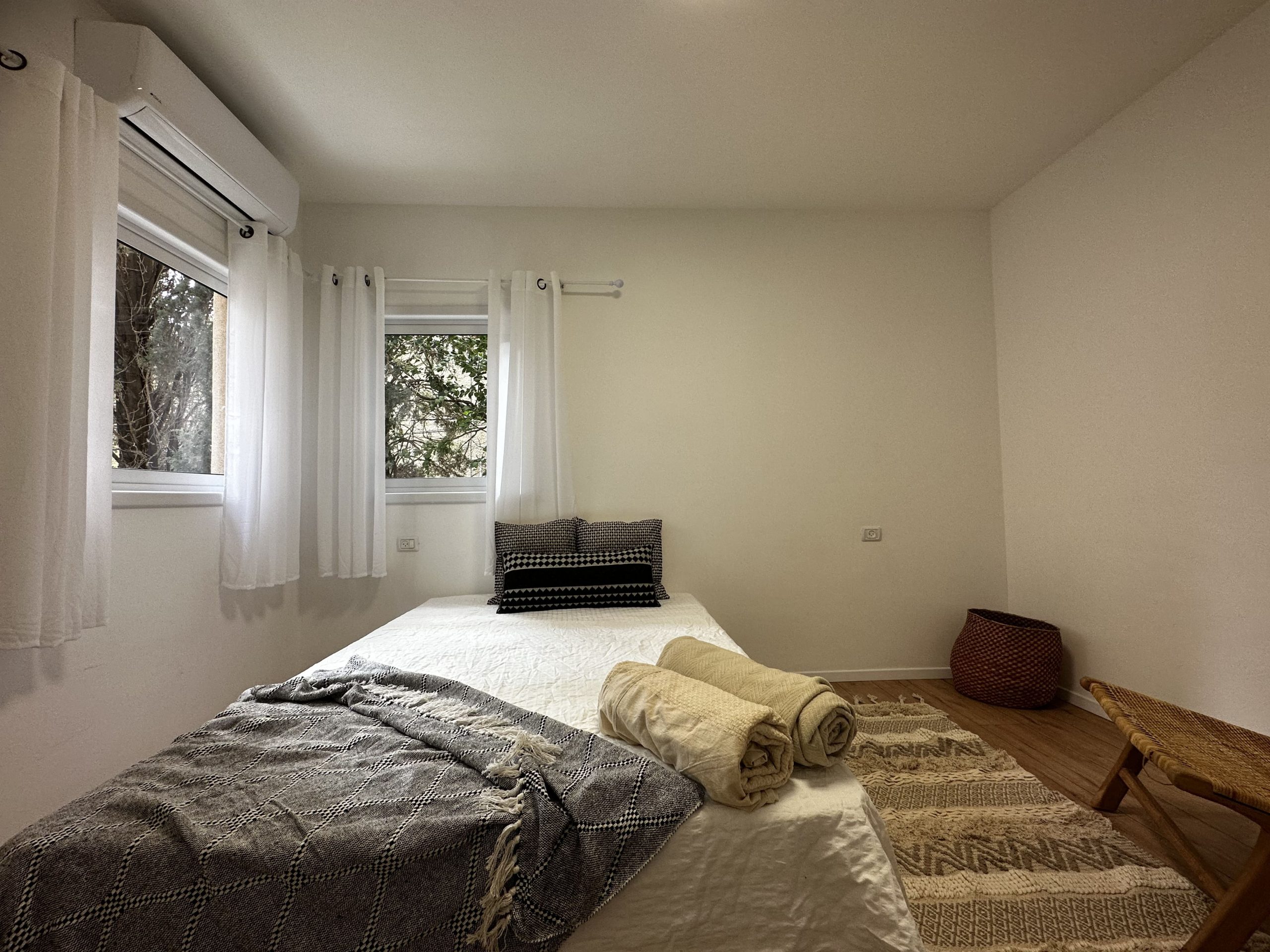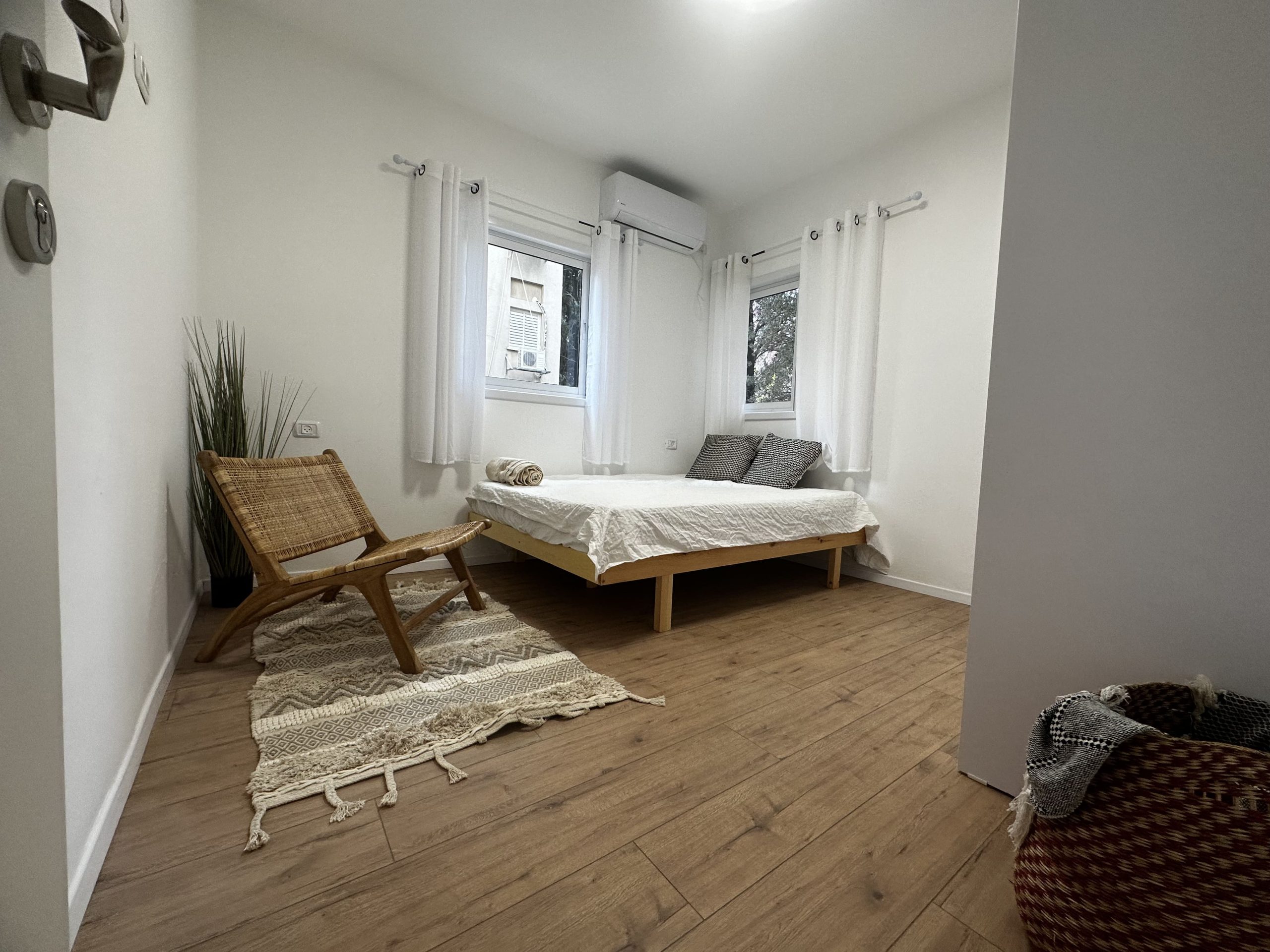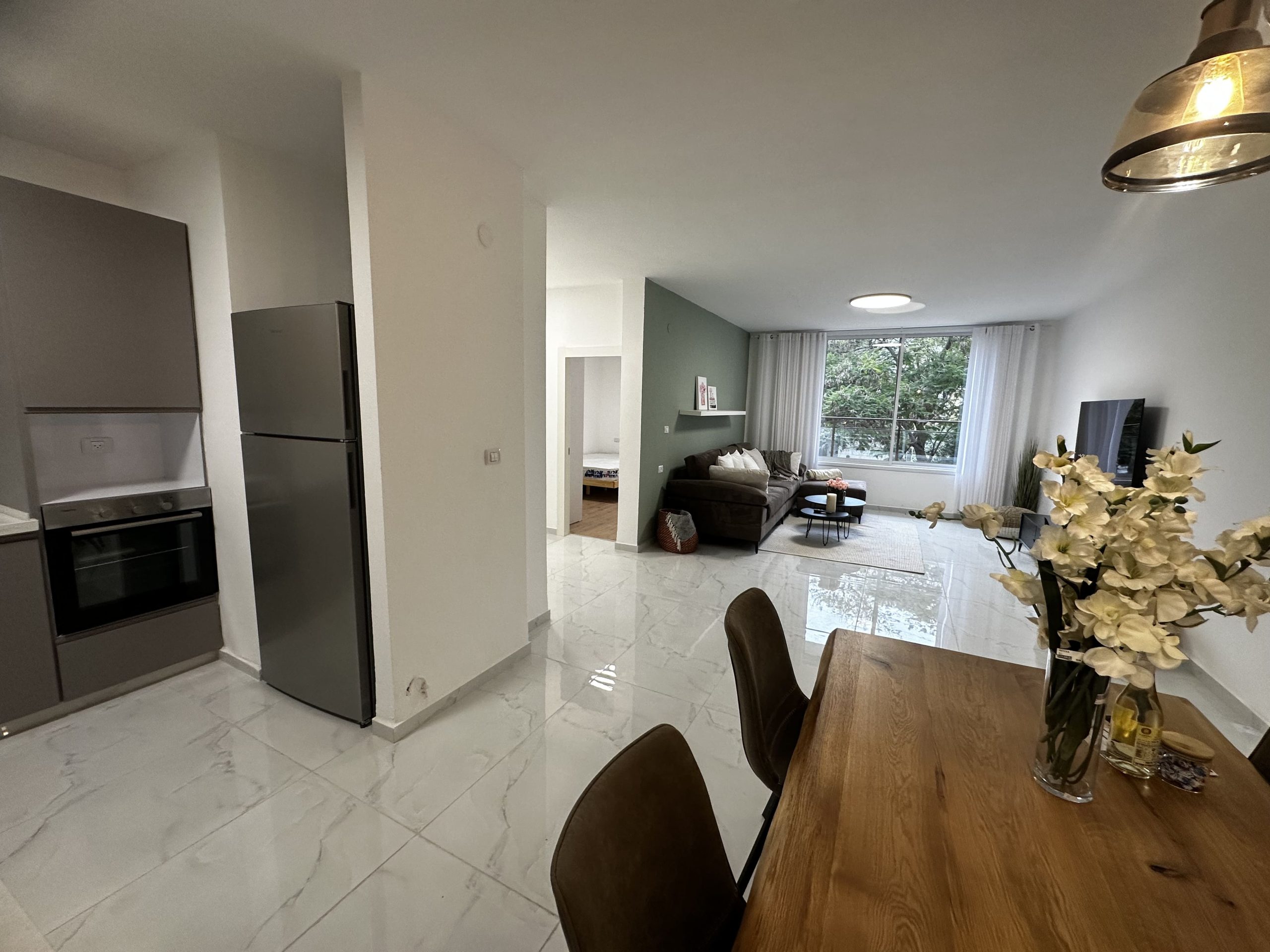The kitchen comes fully equipped with a fridge, oven, stove, and washer/dryer. You won’t need to worry about bills either, as a flat fee of 600 NIS per room includes water, gas, electricity, city tax (arnona), building maintenance, wifi, and furniture.