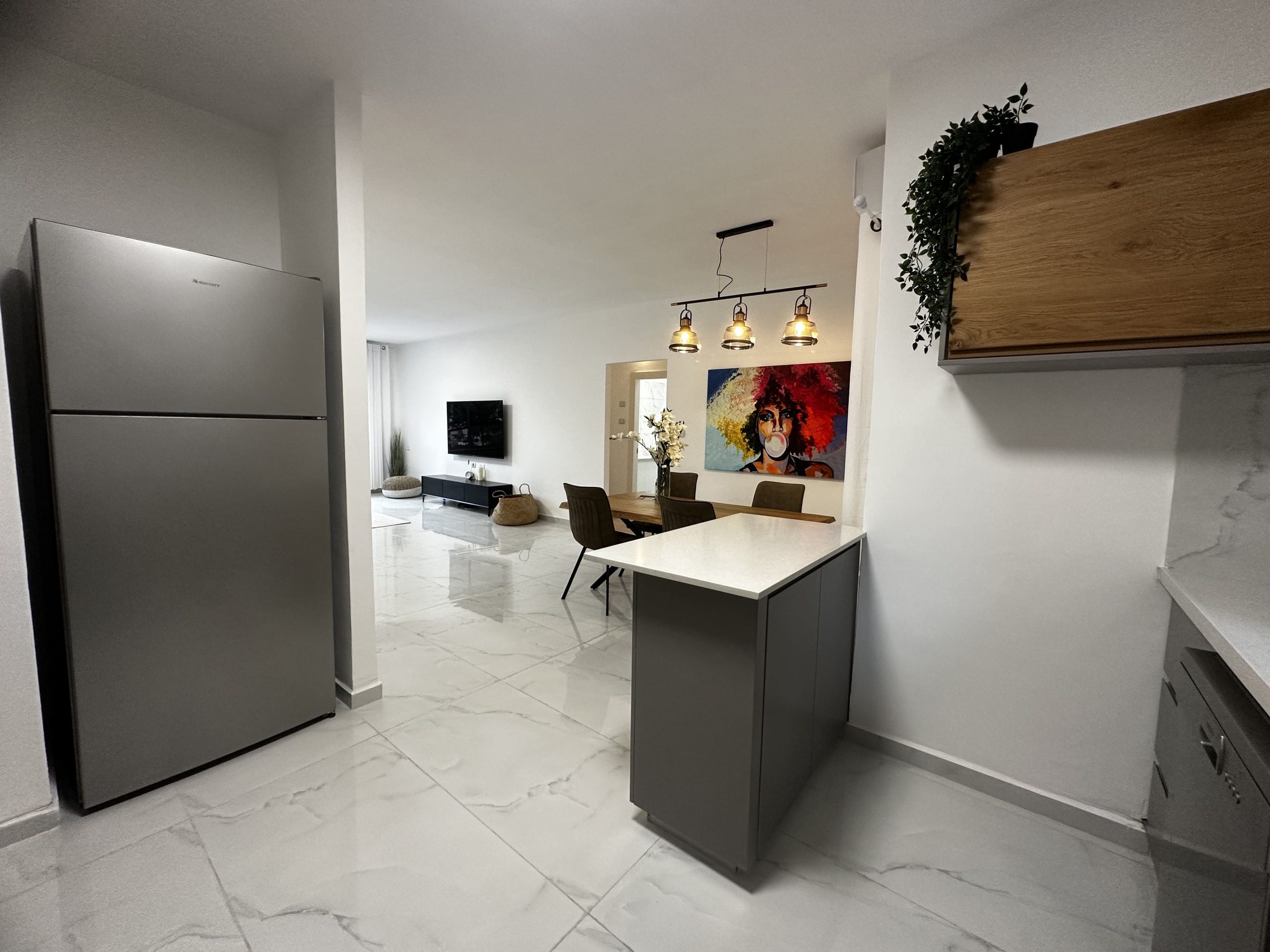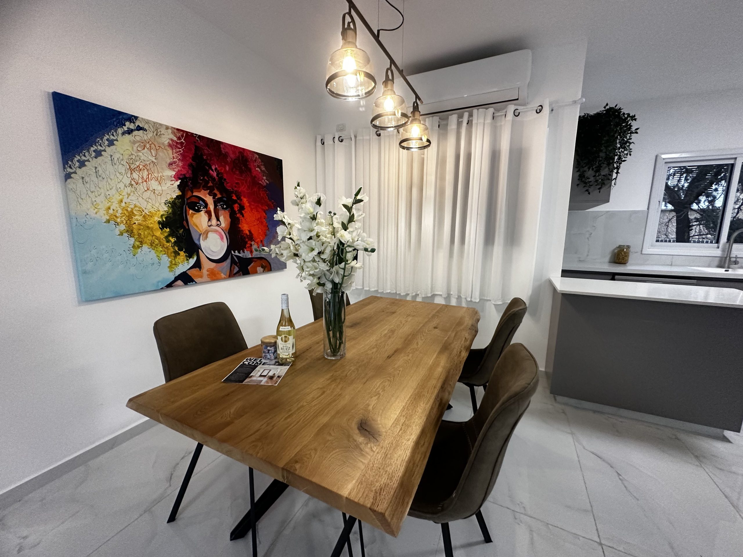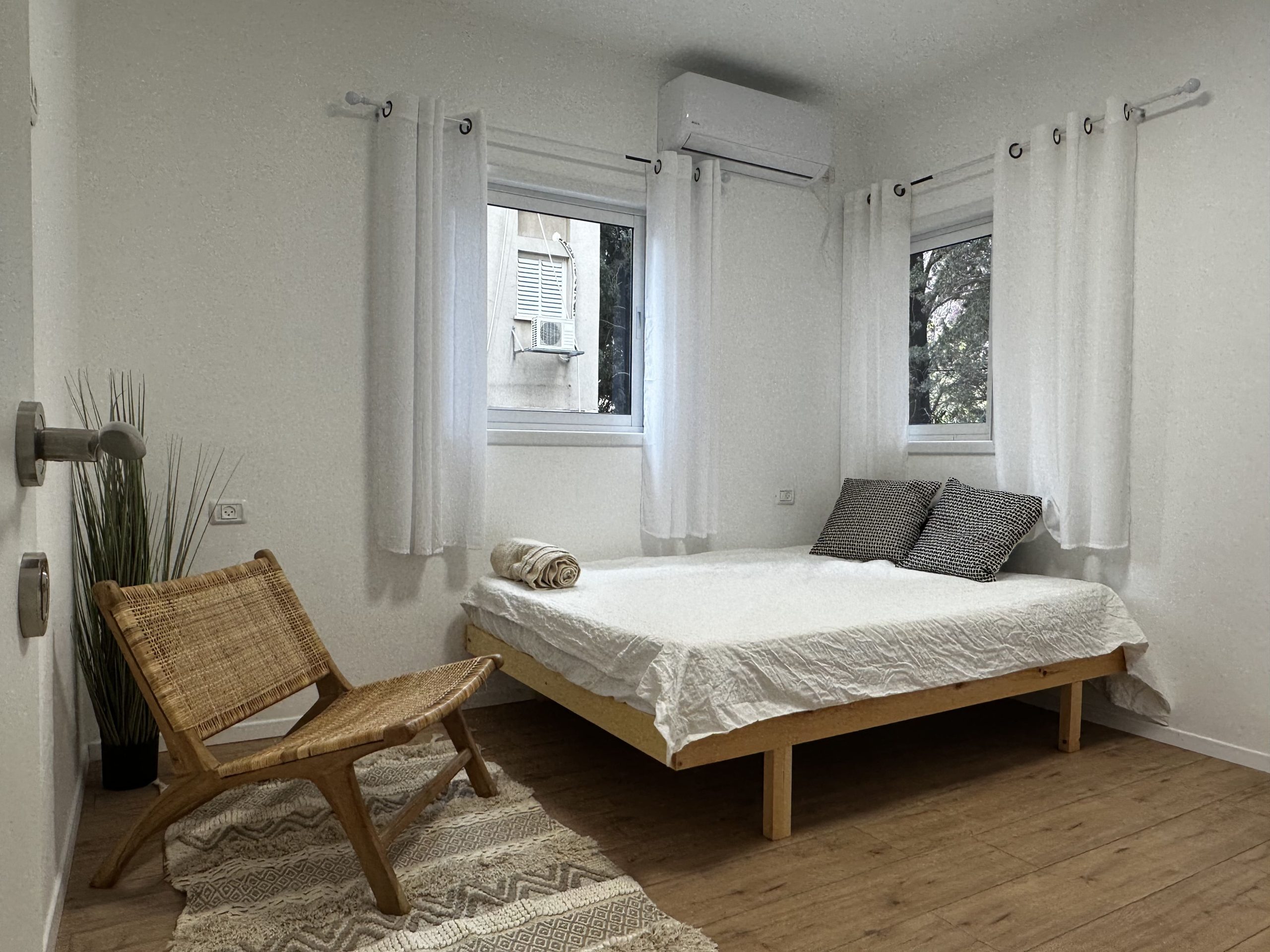 The kitchen comes fully equipped with a fridge, oven, stove, and washer/dryer. You won’t need to worry about bills either, as a flat fee of 600 NIS per room includes water, gas, electricity, city tax (arnona), building maintenance, wifi, and furniture.